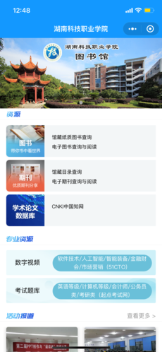 【小程序的建设,将本馆资源-图书(馆藏查询、电子图书阅读)、期刊(馆藏查询、电子期刊阅读)、学位论文库等,专业资源-数字视频、考试题库,活动报道,党建动态做了统一整合,通过校园统一身份认证登录使用,使图书馆资源真正移动化,让全校师生可在任何时间任何地点进行资源获取】