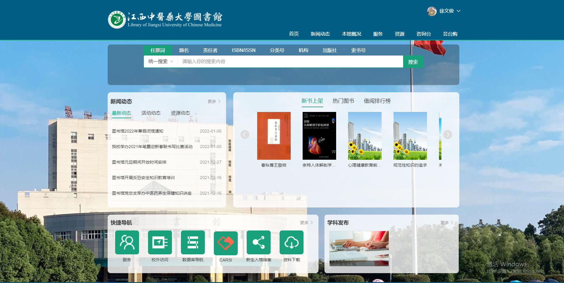 3、门户:library.jxutcm.edu.cn