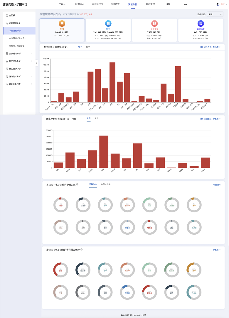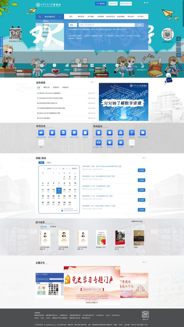 建设内容:智慧图书馆综合管理平台、电子资源管理与分析系统、智慧门户站群系统(西安交通大学创新港门户、西安交通大学教参门户、西安交通大学一带一路专题库、5G专题库、党史专题库、西迁学人学术成就展等系列网站)、西安交通大学主门户网站、智慧读者端/馆员端