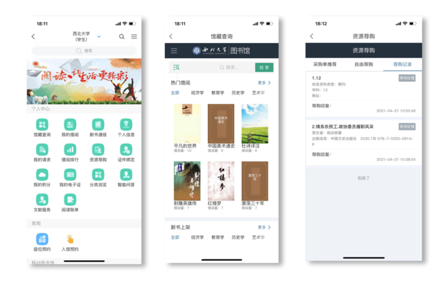 三、移动端功能(对接lsp系统,实现移动端馆藏查询、个人借阅、我的请求、阅读账单、借阅排行等功能)