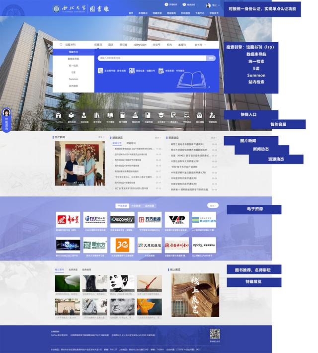全站对接统一身份认证,实现单点认证功能,在站内需要登录处用户只需登录一次即可,目前登录功能:搜索引擎、个人中心、新书通报、书刊荐购、电子资源