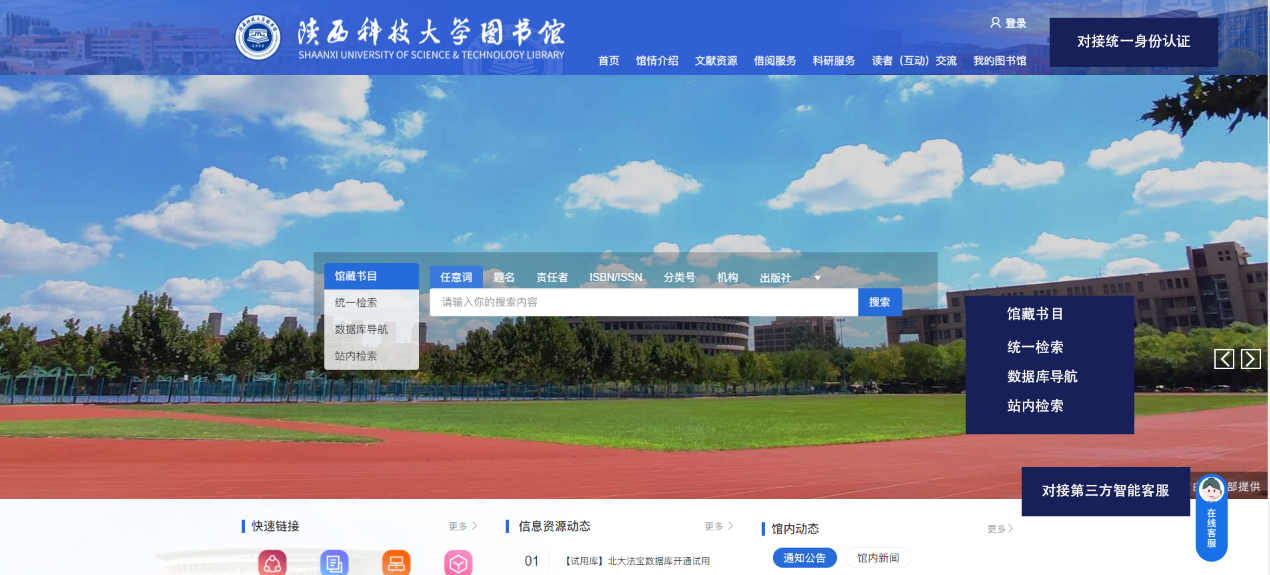 通过第三方接口对接,实现站内身份识别,登录成功后可访问仅供校内师生访问模块