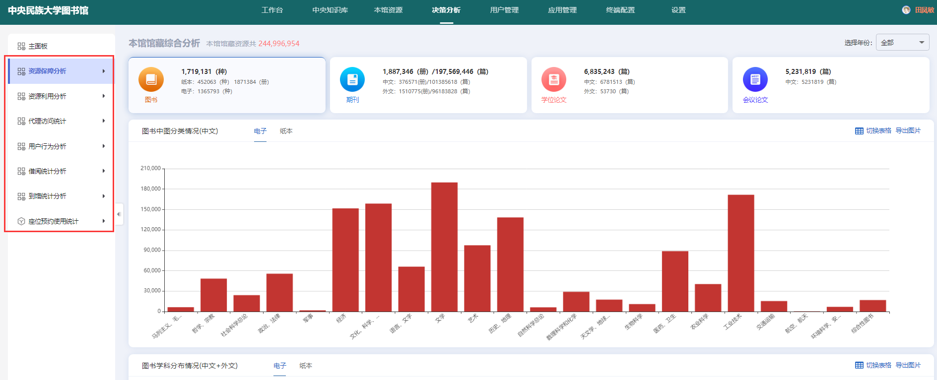 实现对本馆馆藏数据、借阅数据、到馆数据、座位预约数据的全面对接统计,同时,通过代理部署实现对本馆电子资源的统计分析: