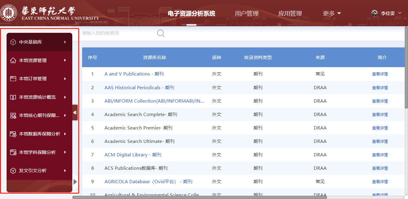 二期建设:电子资源合同发票经费管理、本校发文引文分析、本馆已购资源对本校发文引文的支撑分析
