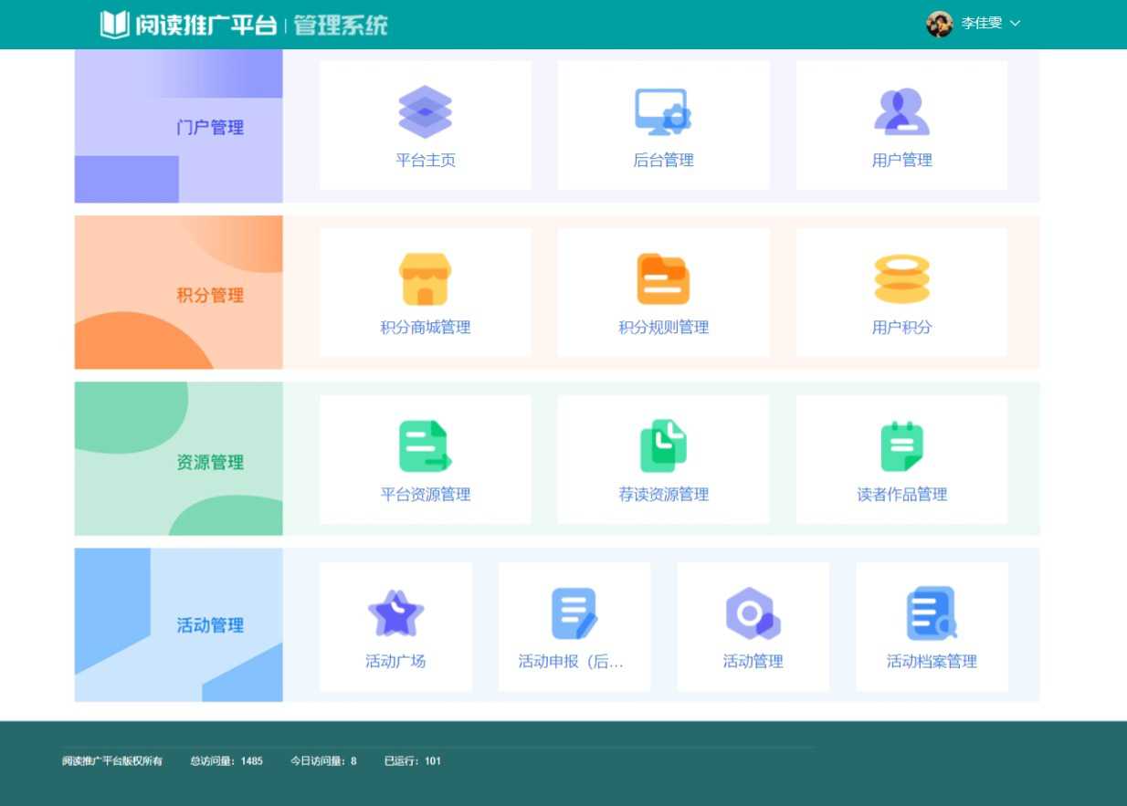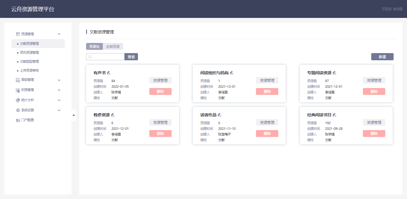 主要用于管理平台各类文献资源,便于管理员进行资源的上传和编辑,查看平台阅读资源的统计情况等。