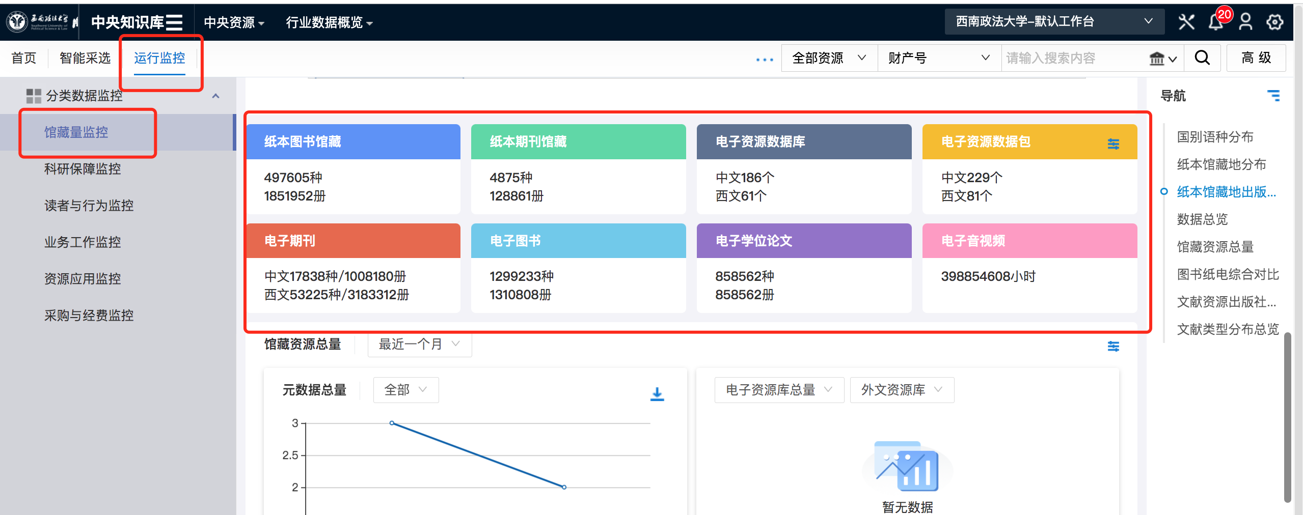 (2)电子资源统计:按照教育部电子馆藏相关文件做到电子资源数据量统计: