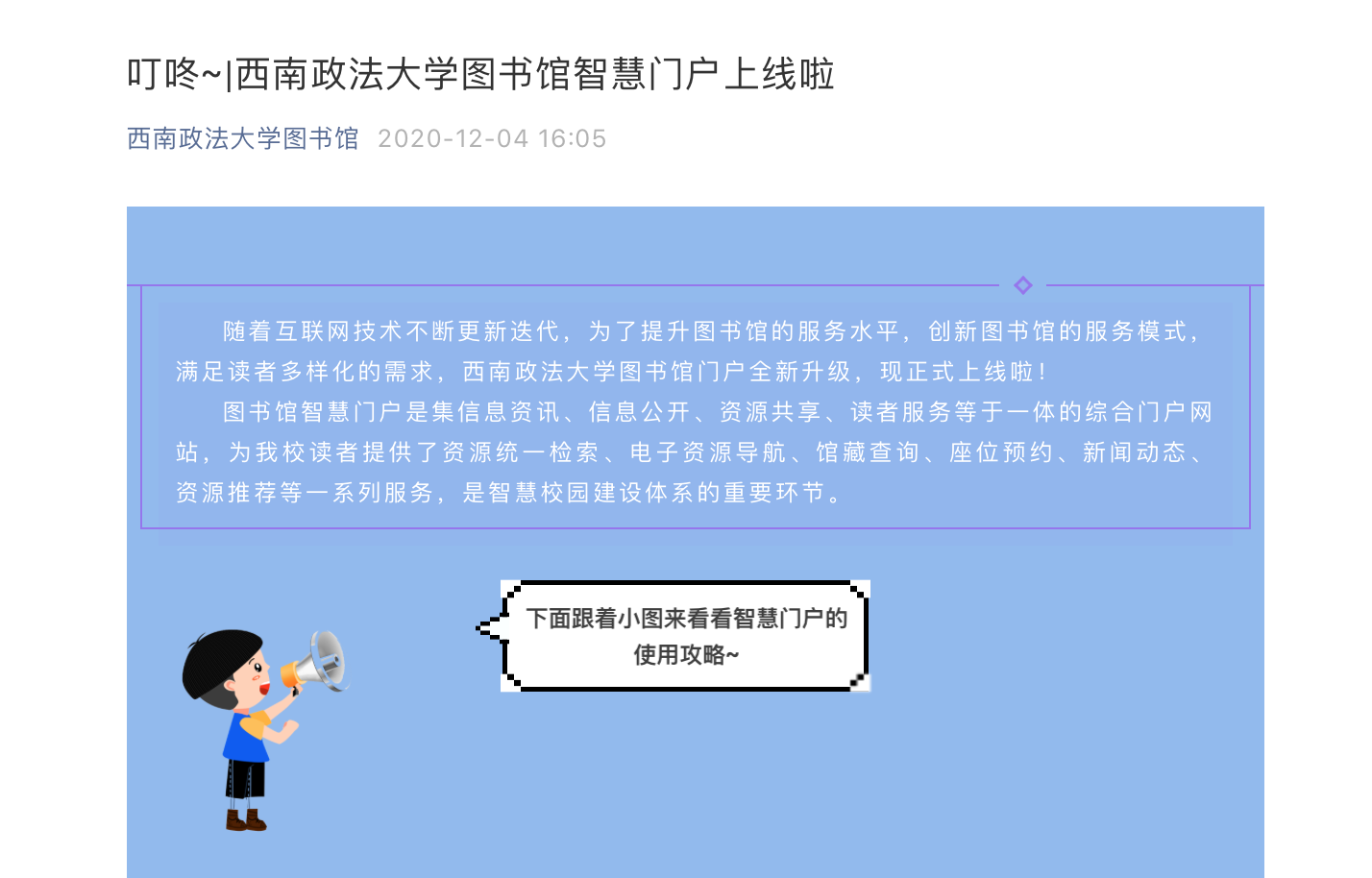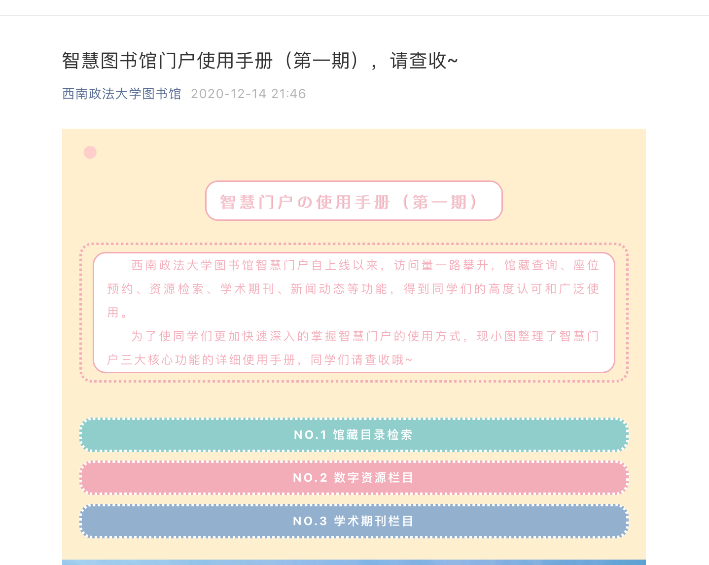 (1)智慧门户:http://lib.swupl.edu.cn/