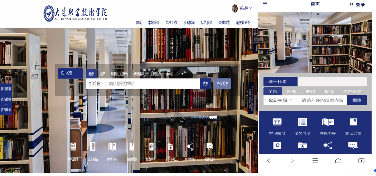 6、大连职业技术学院移动图书馆(按角色建立移动端界面)