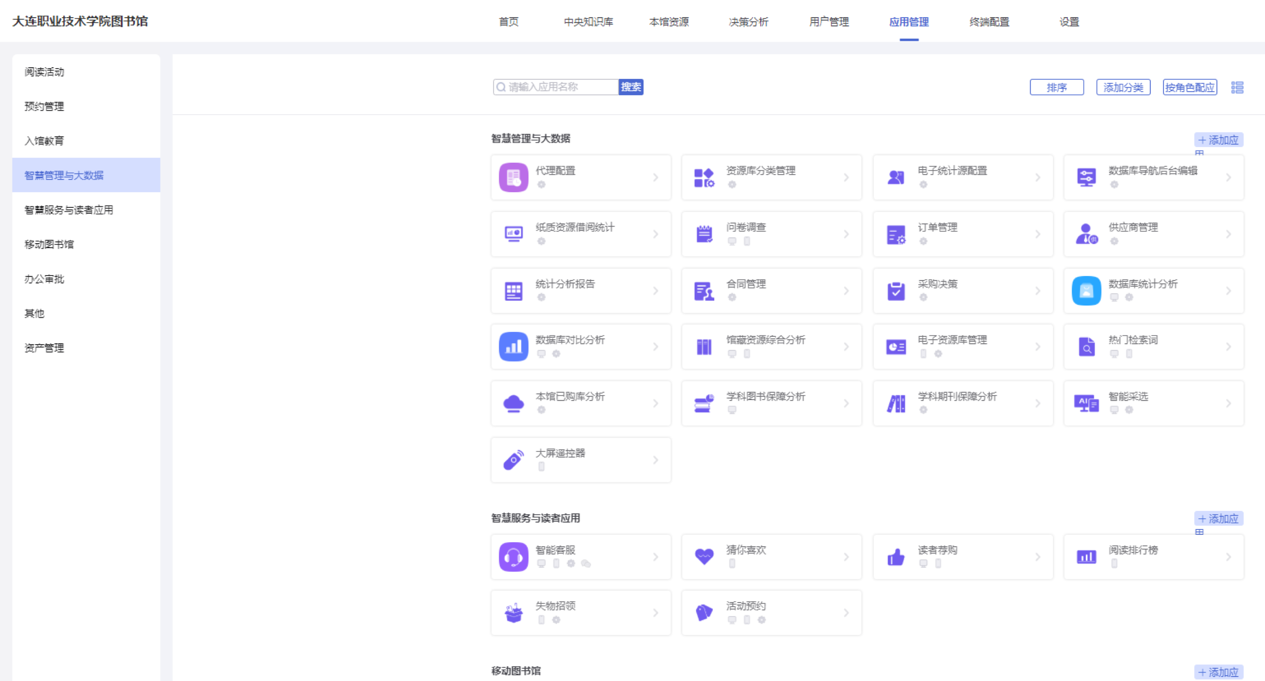 智图建设内容:电子资源管理与分析系统、智慧门户系统、大数据分析系统、移动图书馆(智慧馆员端、读者端)等。