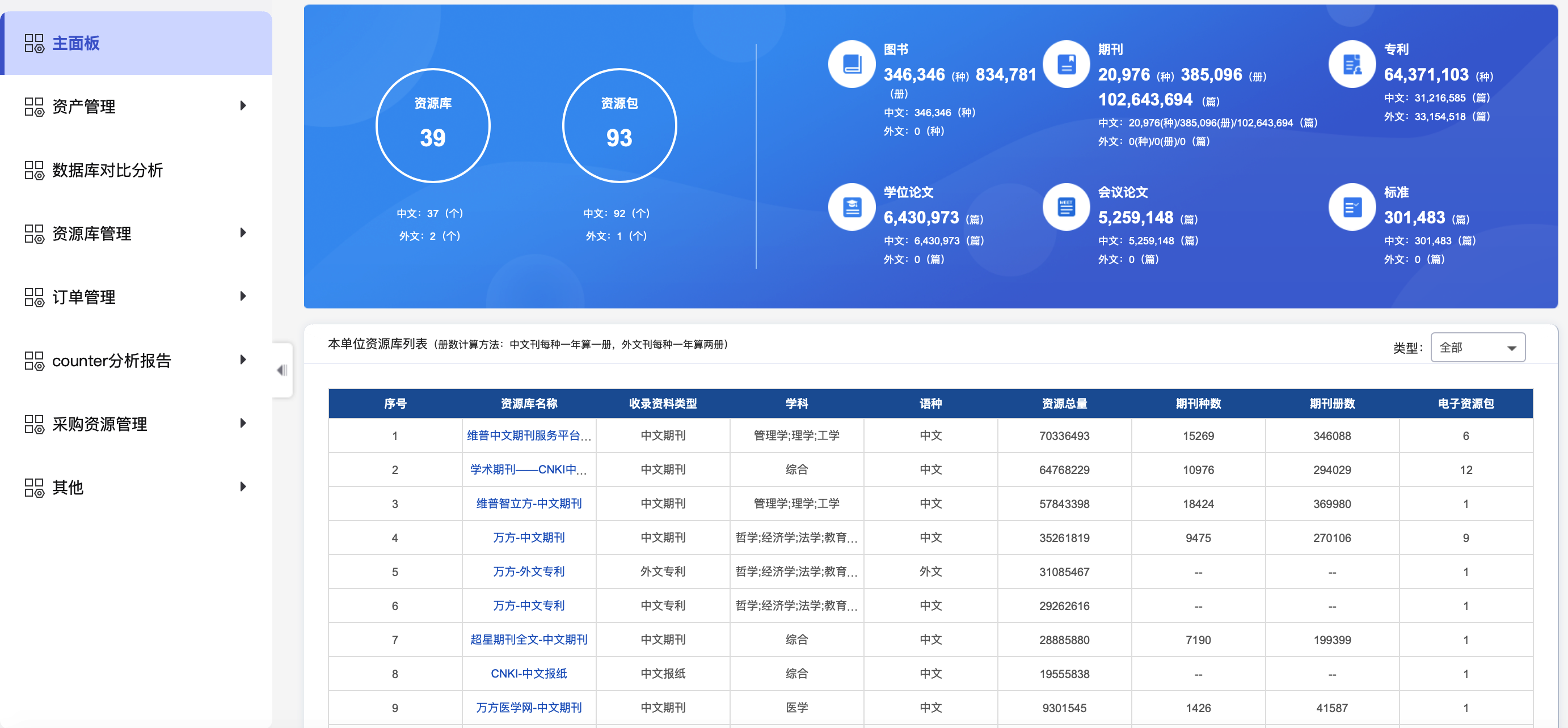 电子资源管理、供应商管理、智能采选、数据库对比分析等