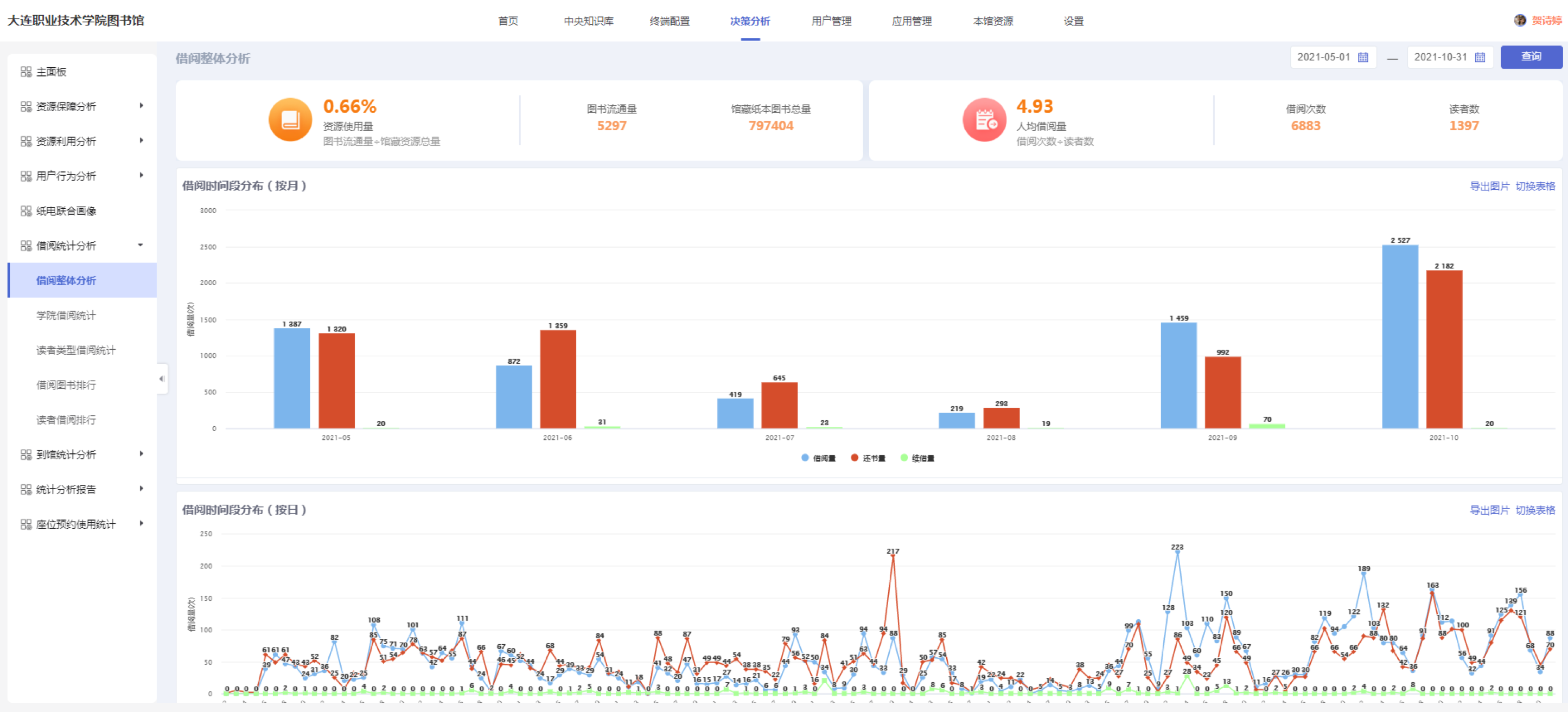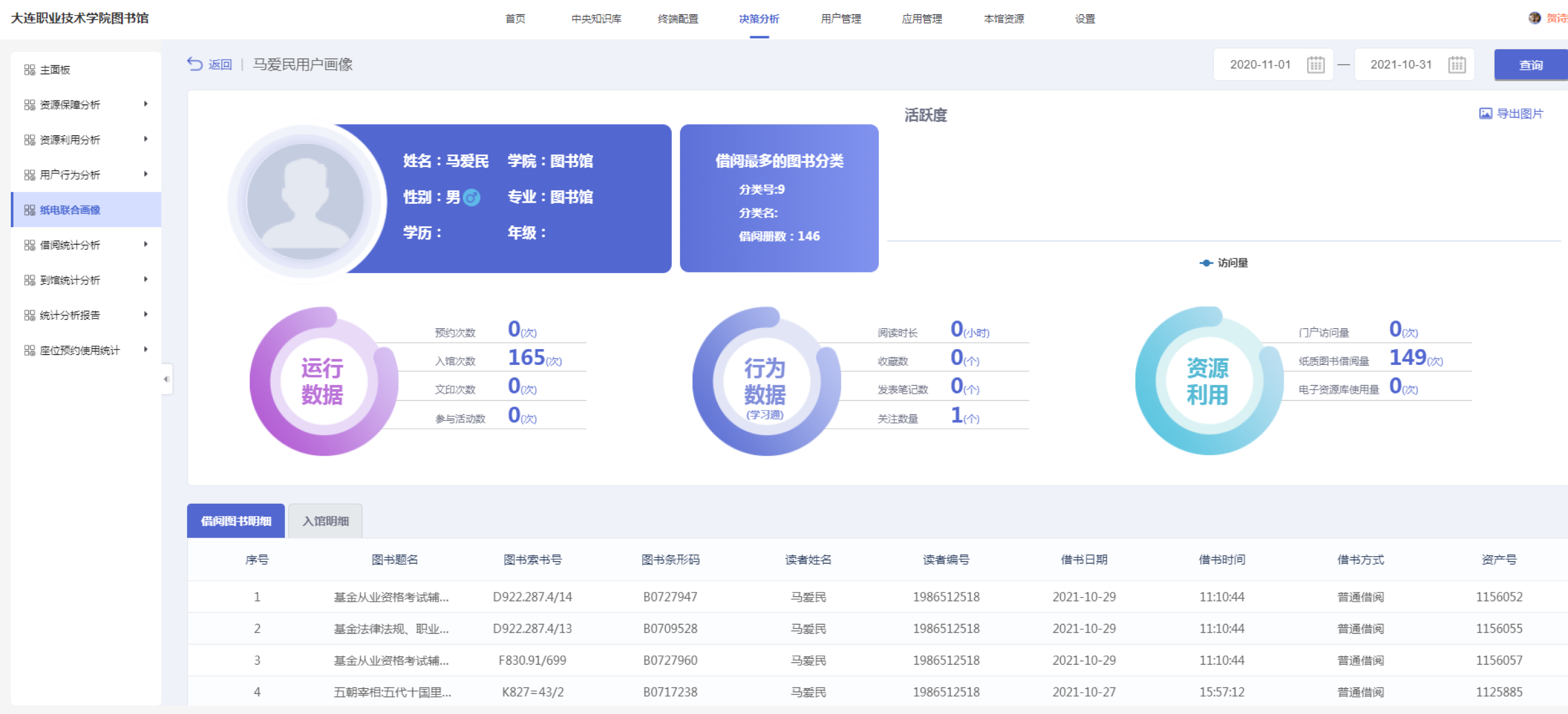 大数据分析系统(现已经对接学校opac、门禁系统,完成数据推送)