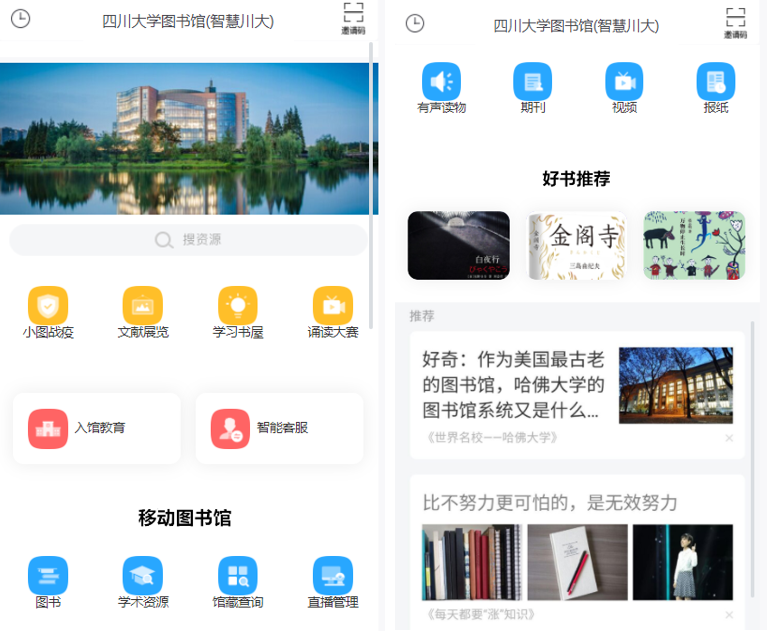 明远驿站——四川大学阅读文化创新服务平台,以泛在方式为师生提供电子图书借阅、可视化阅读、专题推送、活动推广、服务宣传等特色服务。全校18台明远驿站在智慧图书馆平台上针对资源、样式的进行一站式管理。