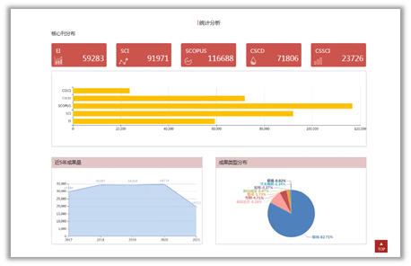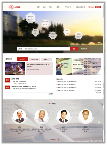 基于超星12亿条元数据,经过数据清洗和筛选,四川大学机构库涉及17395位学者、92个二级机构、数据最早可回溯至1864年、现数据总量庞大超57万条、现已实现数据逐年积累、定期更新。