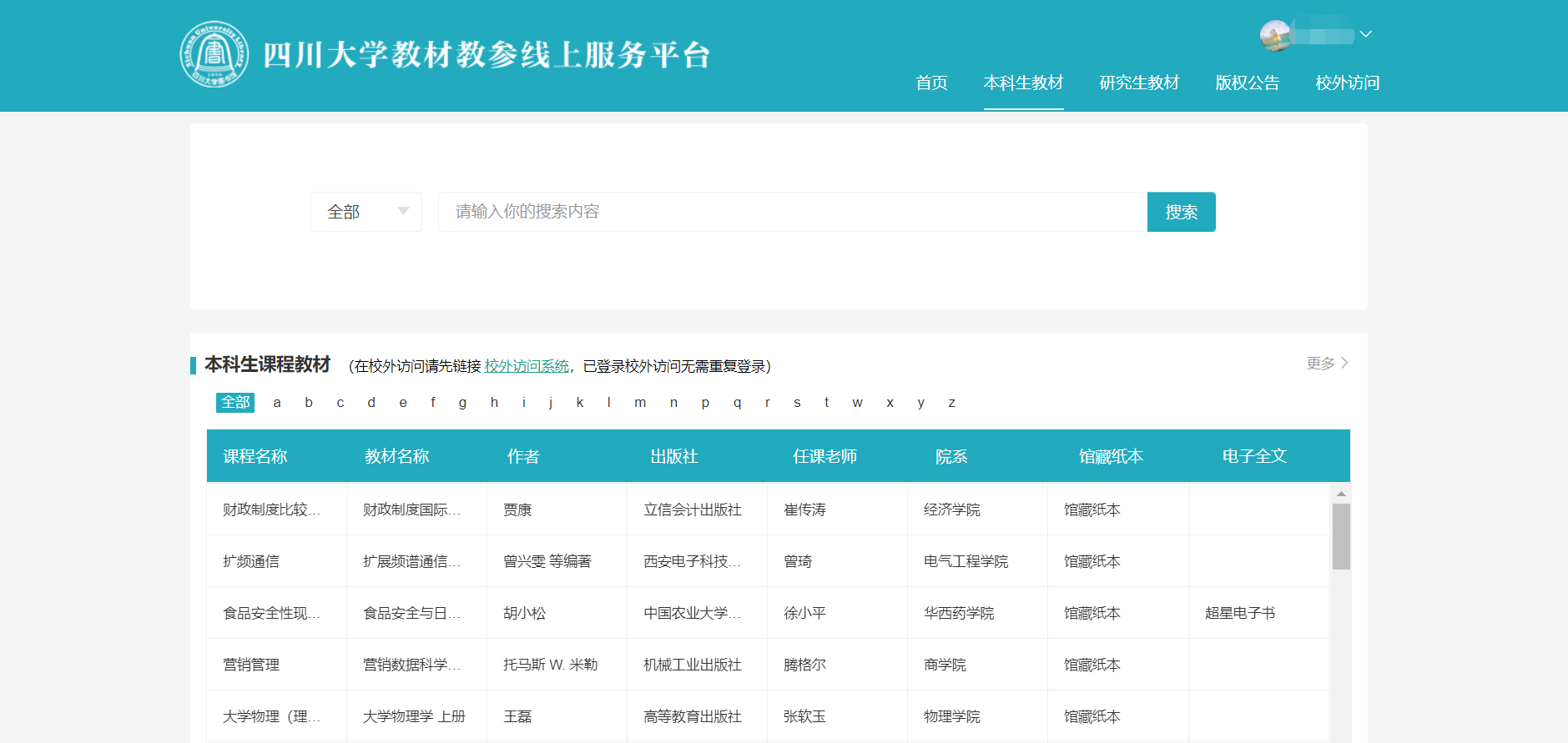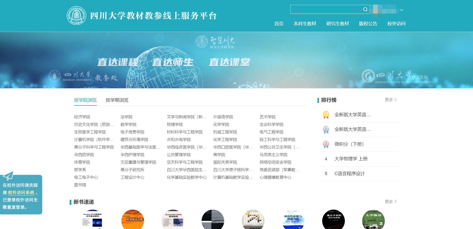 1.教材教参线上服务平台1.0:http://scujc.dayainfo.com/