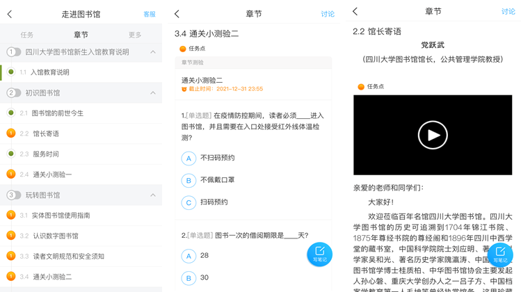 基于超星智图APP,实现图书馆新生入馆教育的线上学习兼测试、线下参观了解同步进行,最终完成35,094位新生的入馆教育流程。既面向师生全面宣传了图书馆的功能、服务,又减轻了老师在宣传方面的工作量,并且实现了图书馆名下用户信息的可感知可了解,入馆教育的学习数据可查可用可分析(满分通关之后自动获取借阅权限)。