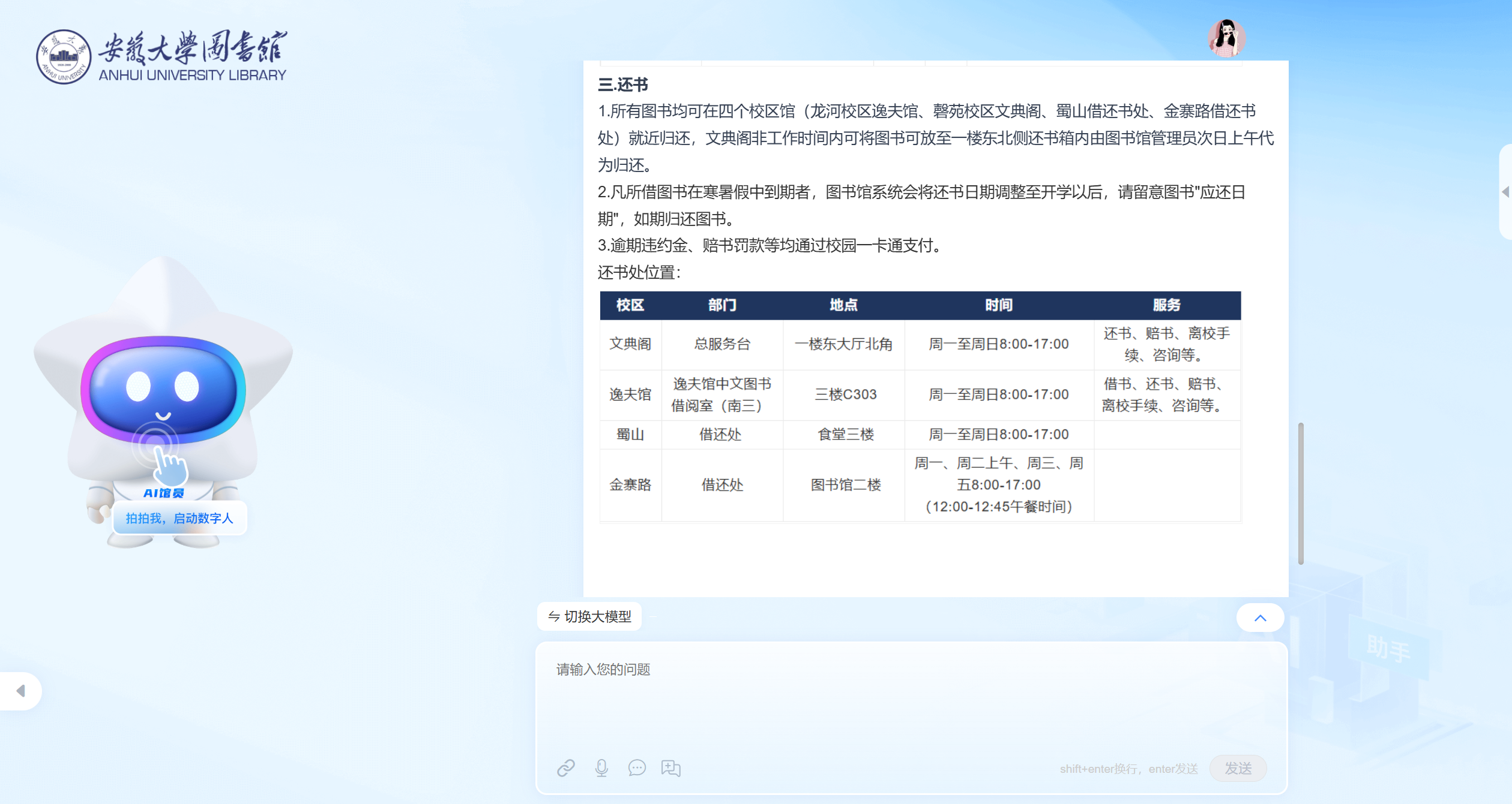 项目建设内容:智慧图书馆综合管理平台、纸电一体业务管理系统、中央知识库、智慧门户、学科数字分馆(一门学科:材料科学与工程)、学科分析评价系统、微信服务号(消息提醒)、移动端、AI馆员。