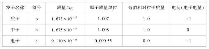 表2.1 原子中基本粒子的特征