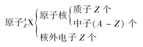 若以AZX 代表原子的组成。元素符号为X,元素符号的左下角标记核电荷数,左上角标记质量数,则构成原子的粒子间的关系。可表示如下:
