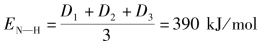 在NH3 分子中,N—H 键的键能等于3 个N—H 键离解能的平均值,即