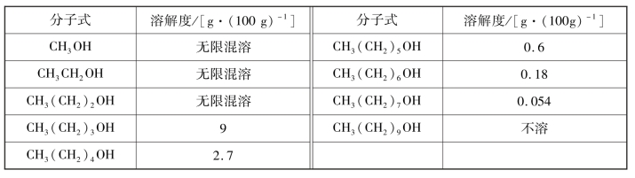 表4.2 醇在水中的溶解度(室温)