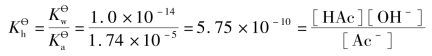 解 ①已知HAc 的解离常数KӨa=1.74×10-5,NaAc 为弱酸强碱盐,水解反应方程式为