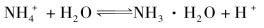 NH4Cl 为弱碱强酸盐,NH+4 可部分地与水解离出的OH-作用生成H2O。水解平衡为