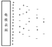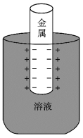 在一定条件下,当把金属放入含有该金属离子的盐溶液时,有两种反应倾向存在:一方面,金属表面的离子进入溶液和水分子结合成水合离子,某种条件下达到平衡时金属表面带负电荷,靠近金属附近的溶液带正电荷,如图7.1所示。