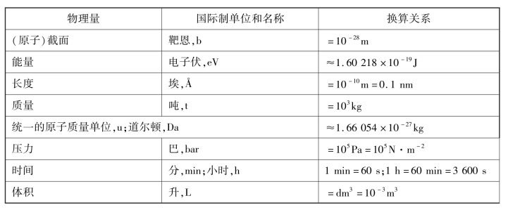 三、一些非国际制单位及其与国际制单位的换算