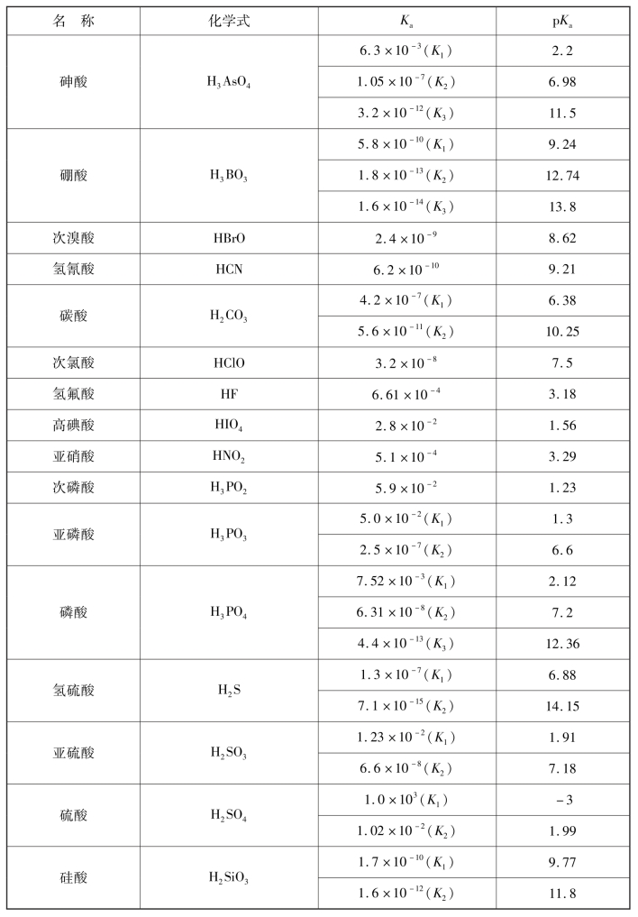 1.13.4.1 一、弱酸在水溶液中的解离常数(25 ℃)
