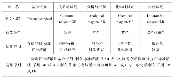 1.13.6.1 一、化学试剂的规格和选用选择