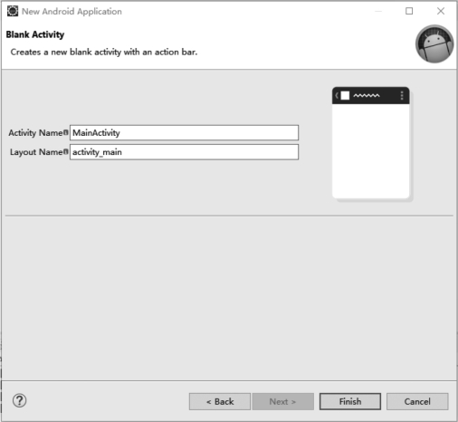 步骤5:继续单击“Next”按钮,可以给步骤4中选择的Activity命名,这里使用默认值,如图2-19所示。