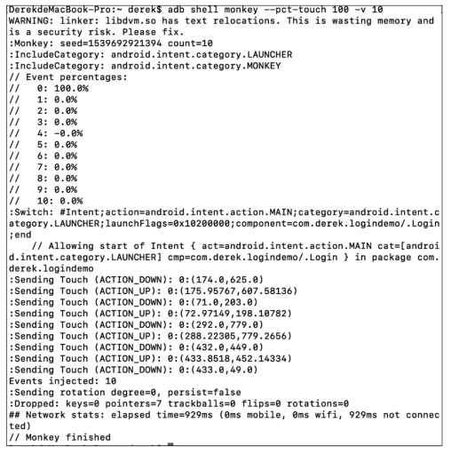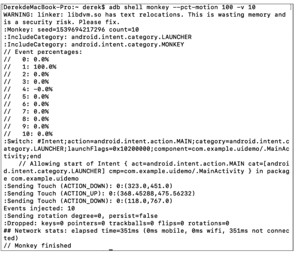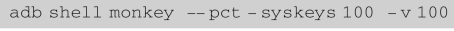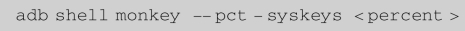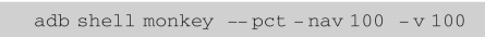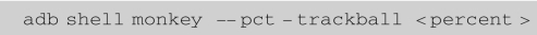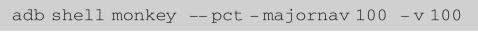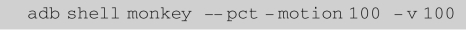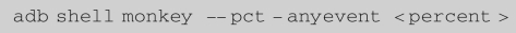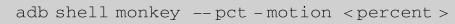 如果希望调整动作事件的比例,可以使用--pct-motion参数。动作事件由屏幕上某处一个down事件、一系列伪随机的移动事件和一个up事件组成。命令格式如下: