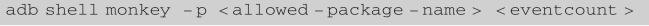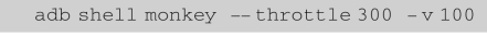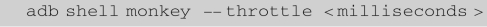 (2)--throttle:在事件之间插入固定的时间(毫秒)延迟,可以使用这个设置减缓Monkey的运行速度,让其更接近真实用户的操作速度,如果不指定这个参数,则事件之间将没有延迟,事件将以最快的速度生成。