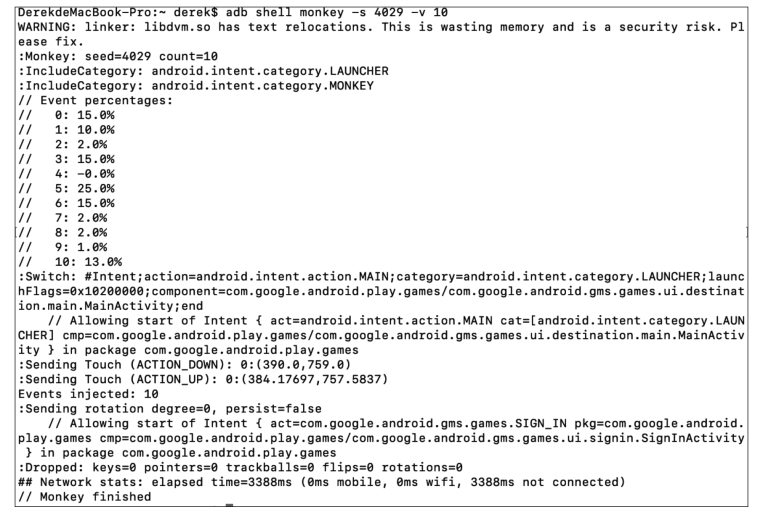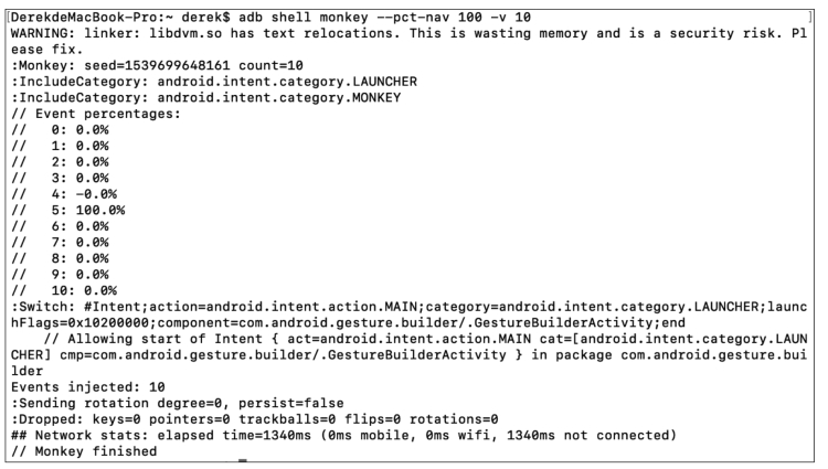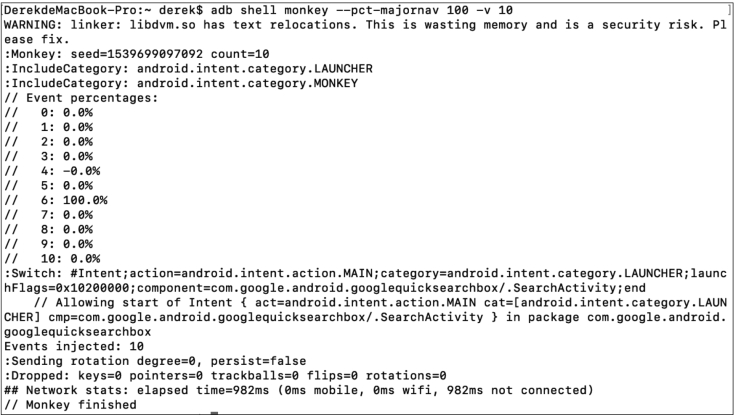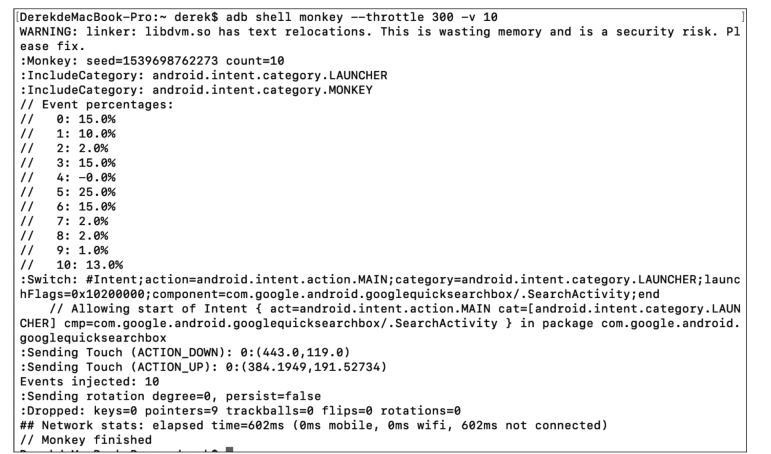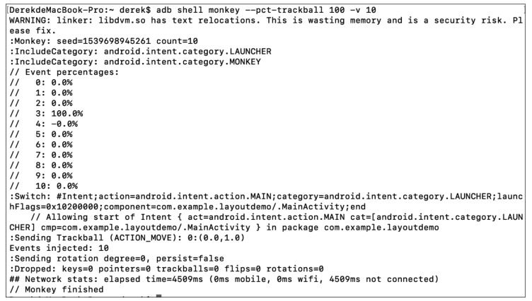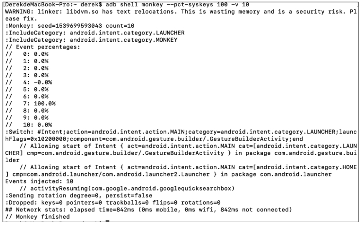 这时,Monkey以无反馈模式启动,运行结果如图10-2所示。