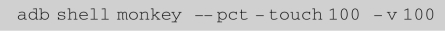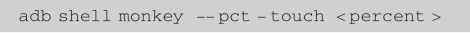 如果希望调整触摸事件的比例,可使用--pct-touch参数。这里的触摸事件是指在屏幕中的一个down-up事件,即在屏幕某处按下并抬起的动作。命令格式如下: