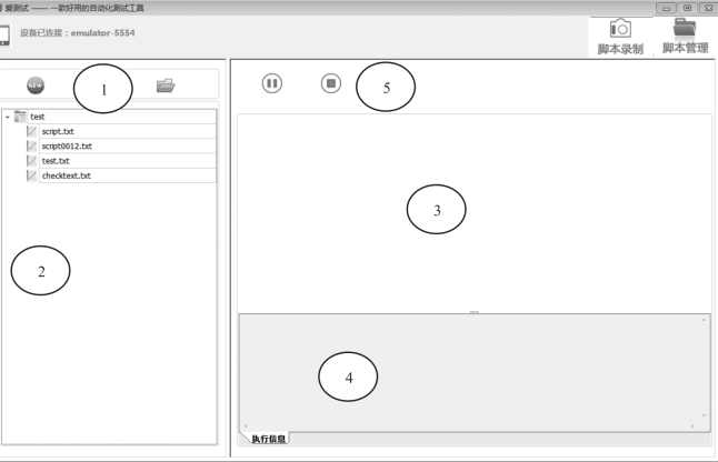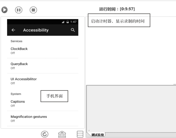 2处是Android手机的界面窗口,会将Android手机的当前界面映射到该处,录制时可以直接操作此处。界面会实时刷新。