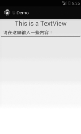 可以看到,EditText中显示了一段提示性文本,当点击文本内容时,这段文本就自动消失了。