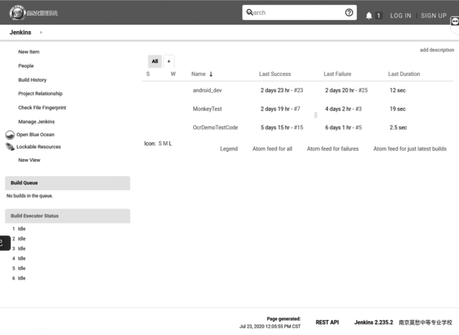 自动化统一管理系统是一个拥有友好操作界面的系统,起源于Hudson,主要用于持续、自动地构建/测试软件项目、监控外部任务的运行。自动化统一管理系统可以独立运行,也可以与文件管理系统和源码编译系统结合使用,基于目前最流行的DevOps概念,它可实现开发代码获取,代码定期发布,自动化编译,自动化打包部署,自动化测试及自动化报告生成、发布,将实践教学过程中的软件开发及软件测试两个部分进行了有效的联运,可对软件版本进行持续的发布或持续的测试工作。自动化统一管理系统的界面如图6-44所示。