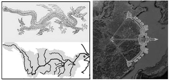 右:中国的海岸犹如一张弓,上海就是射向大洋的箭头。