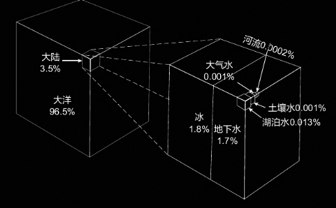 图2 地球上的水,绝大部分是海水