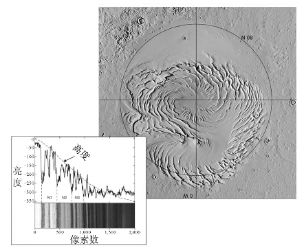 图5 火星上的北极冰盖及其亮度条带显示的冰期旋回
