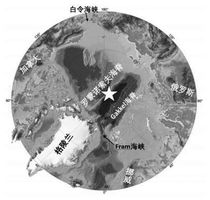 图4 北冰洋海底地形与大洋钻探站位图(图中五角星示IODP 302航次钻井位置)