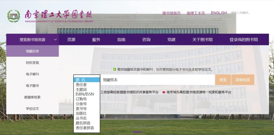 进入南京理工大学图书馆主页(http://lib.njust.edu.cn),读者可利用馆藏目录(OPAC检索系统)查询馆藏纸本信息,并查看书刊状态