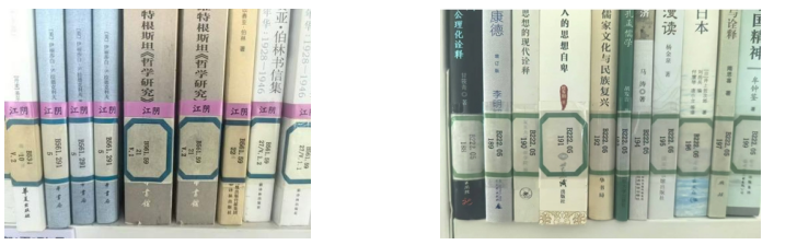 部分图书也可通过书脊处的标签颜色了解图书是否可以外借,书脊处索书号上方贴有红色标签为不可借阅的图书、贴有绿色标签为短期借阅(7天)的图书,仅有蓝色索书号标签为正常借阅(35天)的图书。
