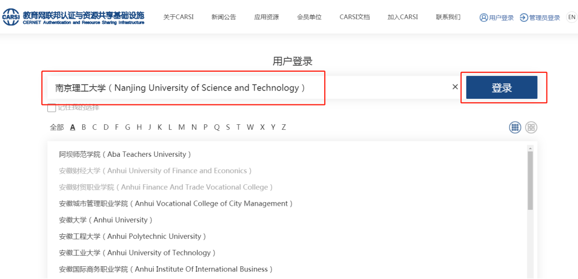 1.输入:南京理工大学,点击登录。