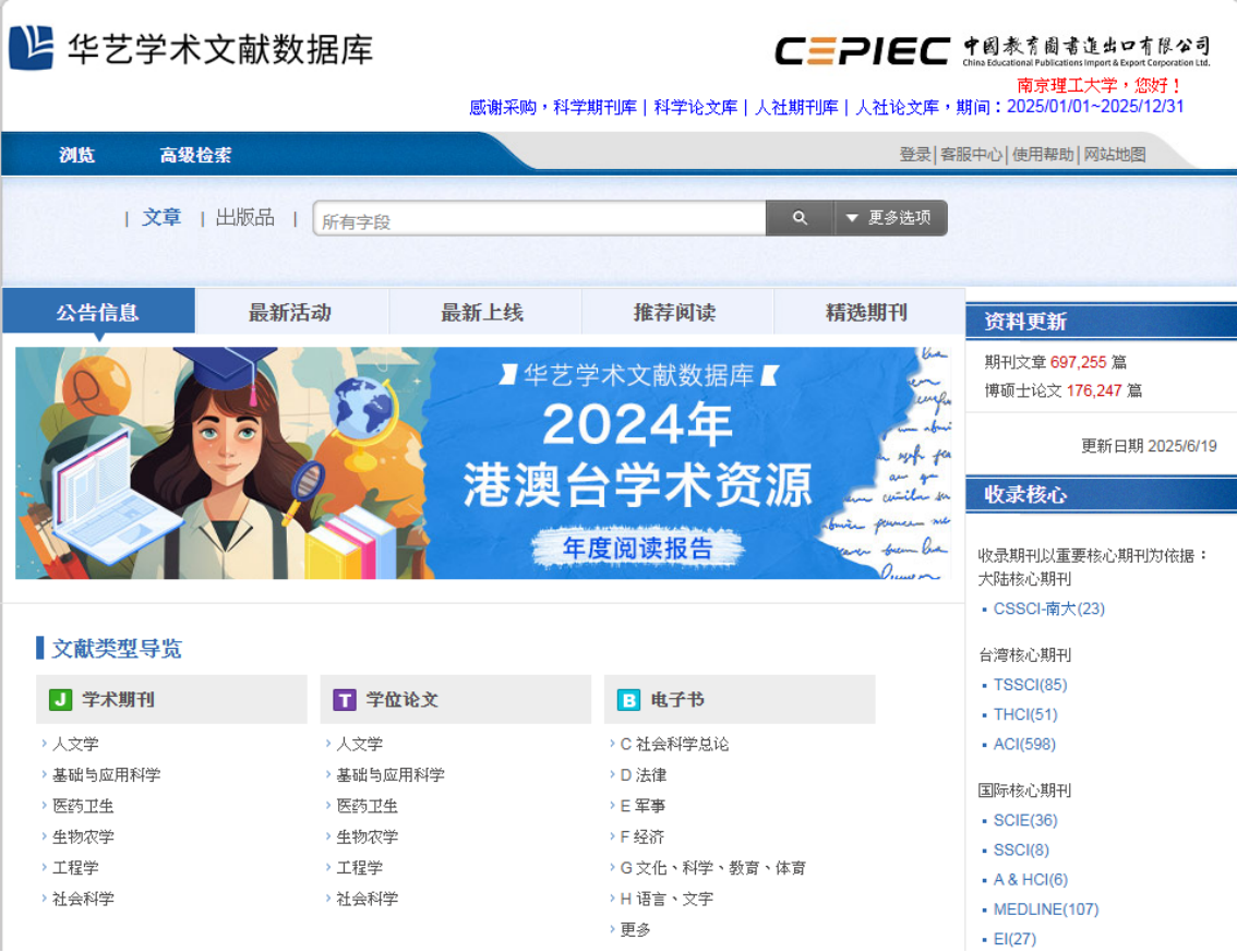 华艺学术文献数据库由《科学文献数据库》、《人社文献数据库》以及《华艺电子书数据库》组成,是台湾收录量最大的学术数据库。收录期刊1991种,期刊全文文章数量超过60万篇;收录台湾62所高校15万余篇的硕博士学位论文,其中独家收录台湾大学和成功大学学位论文约50000篇,约占学位论文总篇数1/3;收录超过1000家出版社超过45000册电子图书。