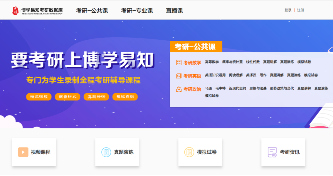 博学易知考研数据库是权威的考研视频学习平台,囊括考前指导、名校宝典、名师讲堂、考研公共课、考研专业课、小语种考研、英语四六级、考研特训营八大类考研视频资源。提供从考研考前辅导,名校考研专业解析,考研公共课、联考课、专业课学习,行业顶尖名师辅导,考研复试全过程考研课程,考研视频课程逾20000课时,满足各类考研学习需求。考研数据库以视频课程为主,保持与线下考研辅导培训机构课程一致,采取直接录制无切割方式,保持原有课程体系,可以系统化进行学习。
