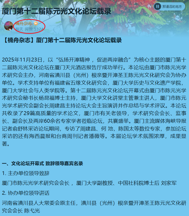 1.22刘六光:持续弘扬陈元光文化的当代价值和历史使命