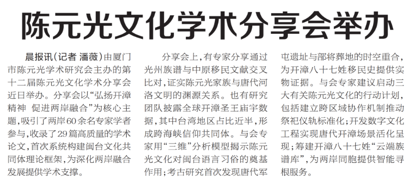 1.11陈国太:陈元光文化、光州文化、闽南文化渊源分析与研究