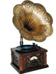 1887年,爱弥尔·柏林纳制造了一种新型留声机。它的特点是,用圆盘形的唱片代替了大唱筒,唱片用两个手摇转轮带动。这种唱片留声机与唱筒留声机相比,性能有了明显提高,是现代电唱机的雏形。